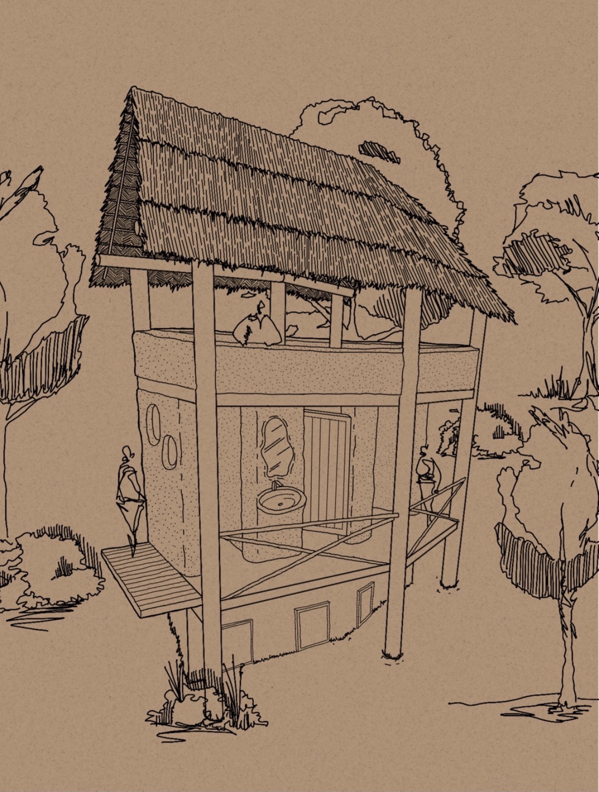 LA construccion de maquetas realizadas por el arquitecto fueron parte fundamental para la organizacion del trabajo con trabajadores locales, quienes aprendieron en esta a construir biotecnias como el baño seco con tres cámaras de secado.