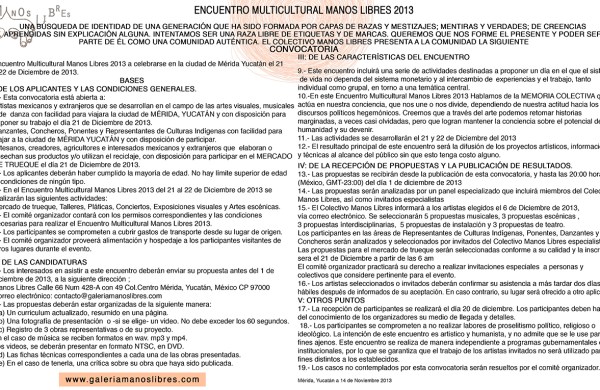 Manos Libres los invita a participar en este encuentro multicultural en su edición para el 2013. Si deseas más información puedes consultar la convocatoria oficial: