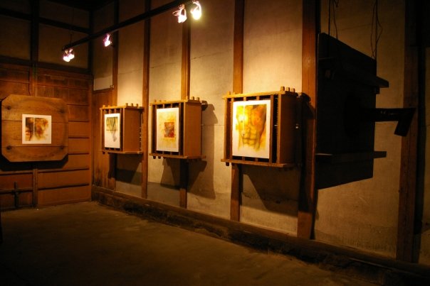 Llegamos a Japón con la obra en las mochilas y sin seguro. Fue en un pequeño pueblo de la provincia llamado Yoddoe Cho Yonago Shi Tottori en donde montamos en una fabrica de sake en desuso y abandonada durante mas de diez años la GALERIA TAISHOUGURA. Durante mas de 10 años hemos realizado este intercambio y este espacio se considera como una sede hermana de PRODUCCIONES MANOS LIBRES.